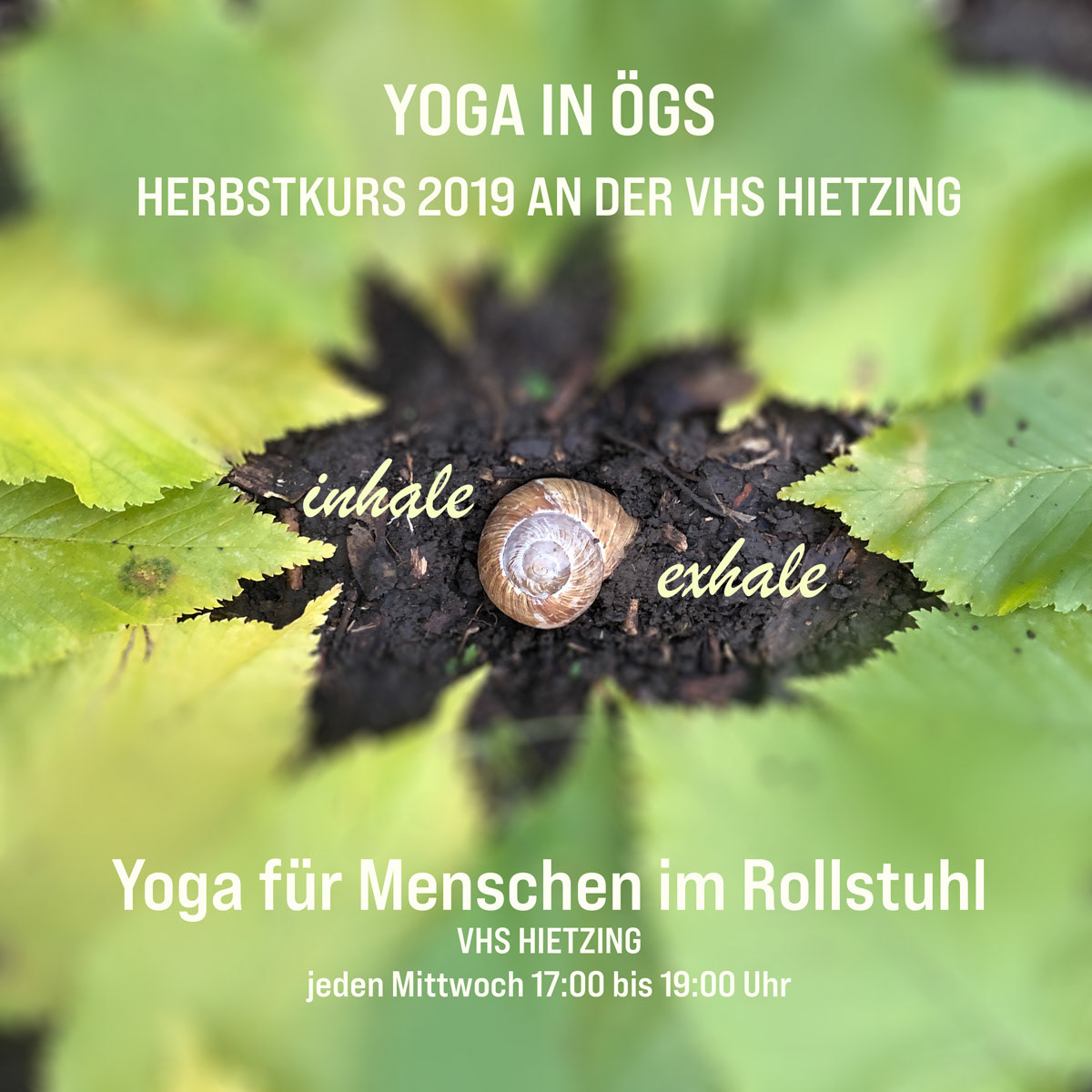 Es geht weiter! Ab September 2019 biete ich an der VHS Hietzing einen wöchentlichen Kurs „Yoga für Menschen im Rollstuhl“ – immer Mittwochs von 17:00 bis 19:00 an, als auch „Yoga in ÖGS“ – immer Montags von 17:00 bis 18:00.